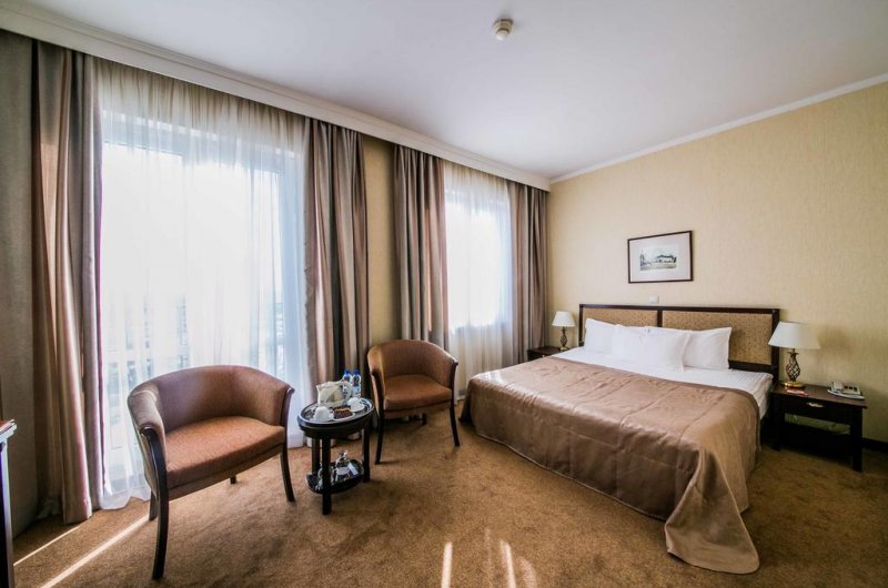Отель «Минск» является первым отелем класса 4 звезды в Минске. Расположен он в самом центре белорусской столицы, всего в 10 минутах ходьбы от железнодорожного вокзала и основных достопримечательностей города. Номерной фонд составляют 252 номера, включая номера категории люкс, трёхкомнатные апартаменты и шикарный президентский номер. Гостиница готова удовлетворить требования самых изысканных гостей. Каждый номер оснащен современным оборудованием и имеет все необходимое для плодотворной работы и полноценного отдыха. К услугам гостей отеля: обслуживание в номерах, камера хранения, прачечная и доставка одежды в химчистку города, рестораны «Минск» и «Седьмое небо», бары, конференц-услуги, фитнес-центр, бизнес-центр, салон красоты, казино «Royal», прокат и аренда автомобилей. Мы надеемся, что перечисленные выше услуги сделают ваше пребывание в отеле «Минск» удобным и приятным. Пусть Минск для Вас начнется с отеля «Минск».